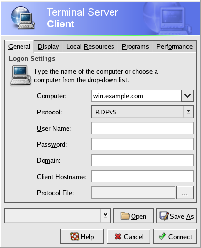 Figure 5-4. Terminal Server Client Using RDP to Connect to a Windows Desktop